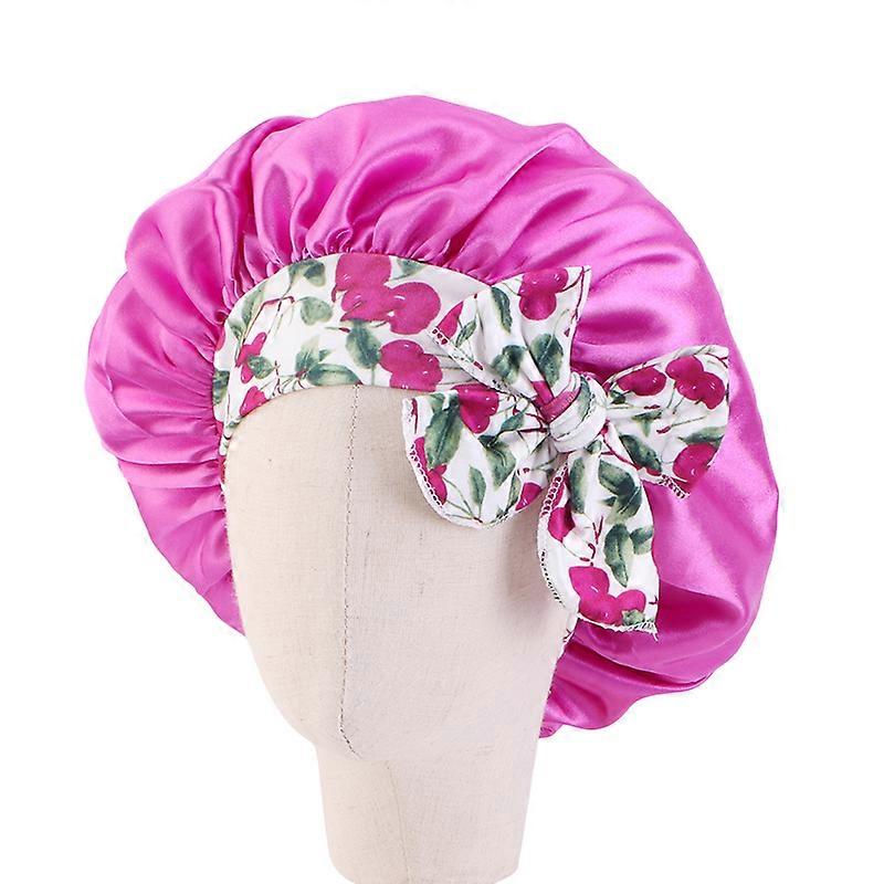 Elastic Kids Silky Satin Bonnet Cap Sleeping Hat Night Sleep Baotou Cap Cute Bow Hair Care Nightcap Bonnet Turban