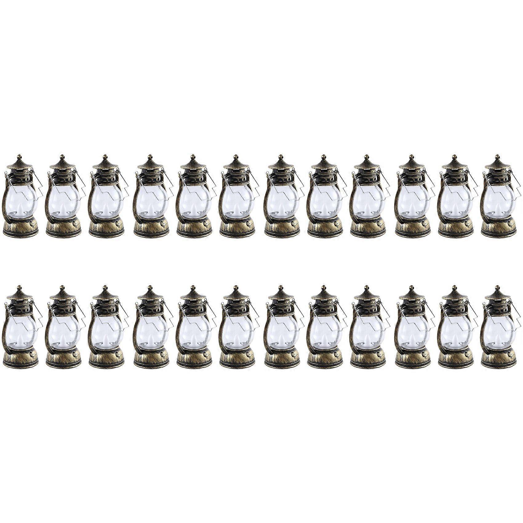 24 Pcs Mini Lantern Decorative with LED Candle Vintage Lantern Hanging Candle Lanterns Battery Operated Lantern Copper
