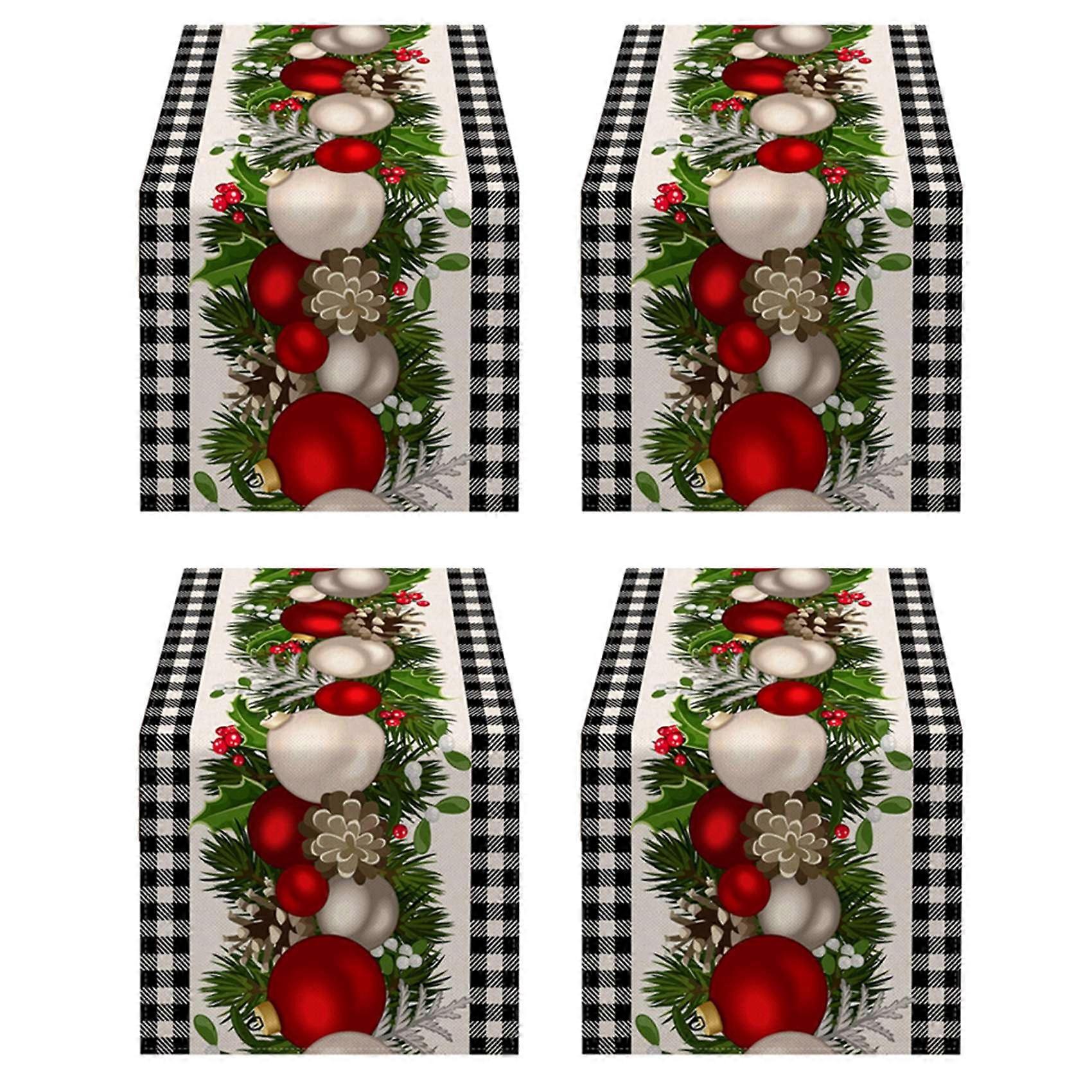 4X Black and White Gingham Christmas Table Runner Check Plaid Xmas Decoration Holiday Home Kitchen Decor