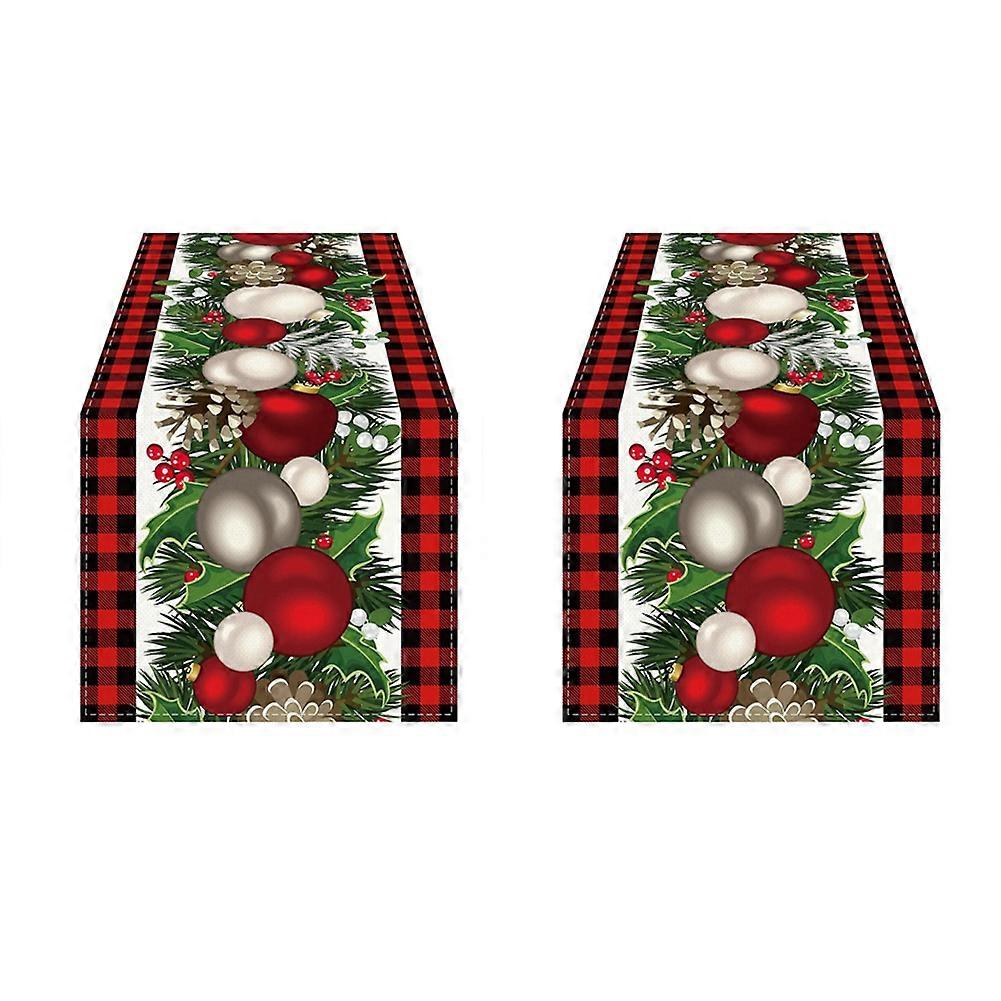 2X Linen Red and Black Check Plaid Christmas Table Runner 72 Inches Long Seasonal Winter Christmas Table Decoration