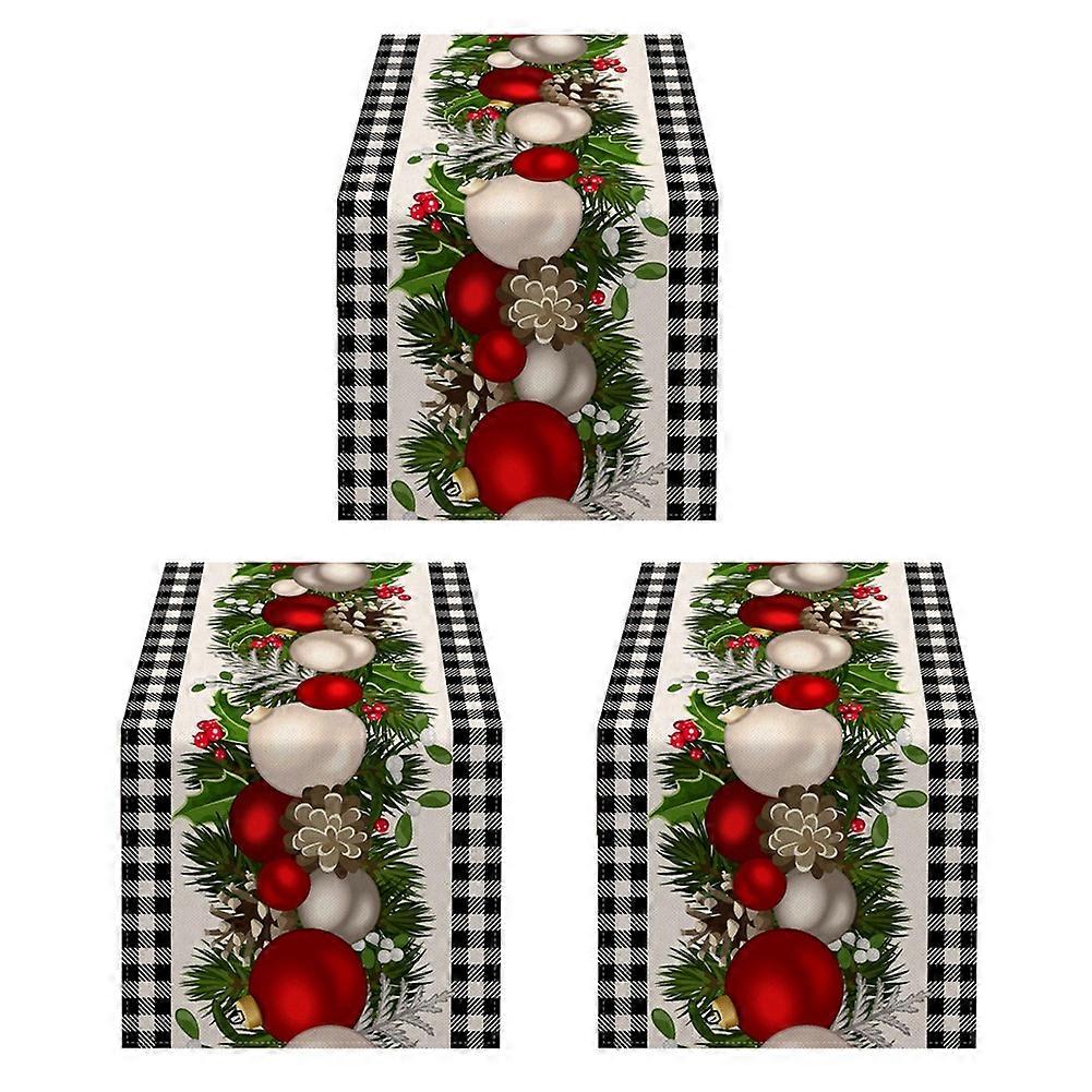 3X Black and White Gingham Christmas Table Runner Check Plaid Xmas Decoration Holiday Home Kitchen Decor