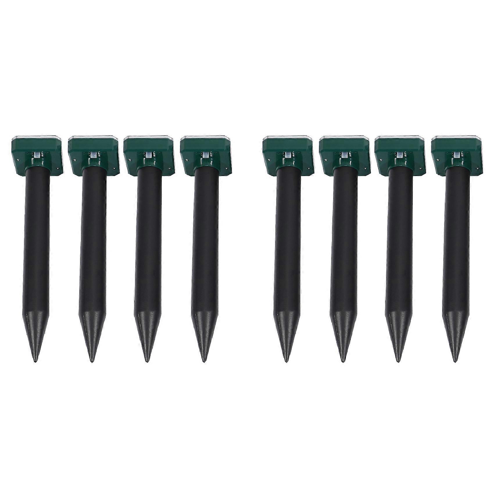 BUZZER VIBRATION TO WARD OFF:The mole repeller vibrate and make sound waves about 400 to 1000 hertz through the buzzer,it can ward off moles, gophers, voles, dandruff and other destructive rodents. SOLAR ENERGY:Equipped with the solar panels and rechargeable batteries, capable to absorb sunshine and come with longer working time, no need to replace battery. SUITABLE FOR MULTIPLE PLACE:Apply to your garden,farm,paddy field;it can ward off moles, gophers, voles, dandruff and other destructive rodents. EXCELLENT WATERPROOF PROPERTY:The product has the characteristics of rainproof and waterproof, and can work continuously even on rainy days. But it can't be soaked in water for a long time. Instructions for use: Step 1 - Insert the device into the ground and make sure the top is about 2 inches from the floor to prevent water from flowing into the interior. Step 2 - Press ON button . When you hear a "buzz", indicating that the Solar animal repeller is running. Note: 1. Wet clay is the best conductive medium of sound; It is difficult to spread sound waves in dry, sandy or peat place. 2. Do not cover the sensor. 3. Please select the solar panel on the top to get as long as possible sunlight. 4. Please install the device in the direction of the animal source for better results. Color: Black + Green material: plastic Package Contents: 8 * Animal Repeller