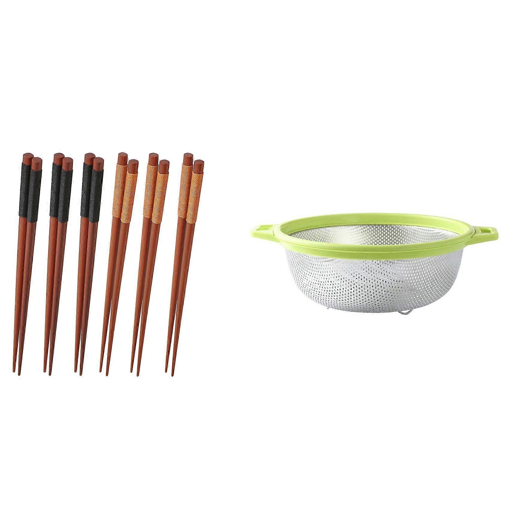 6Pairs Wood Chopsticks,Reusable Chop Sticks Dishwasher Safe with Colander and Handle and Legs Large Green Strainer