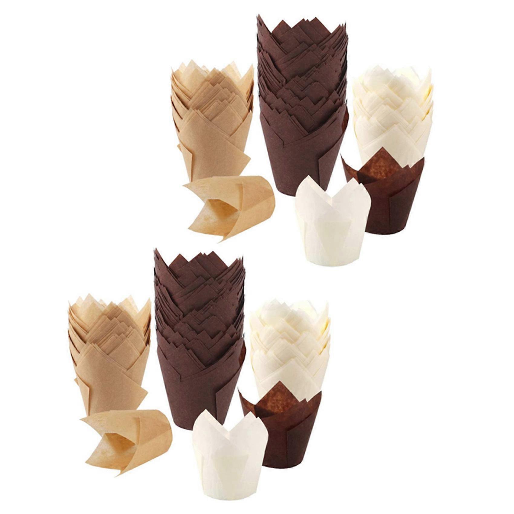 400Pcs Tulip Cupcake Baking Cups, Muffin Baking Liners Holders, Rustic Cupcake Wrapper, Brown, White and Nature Color