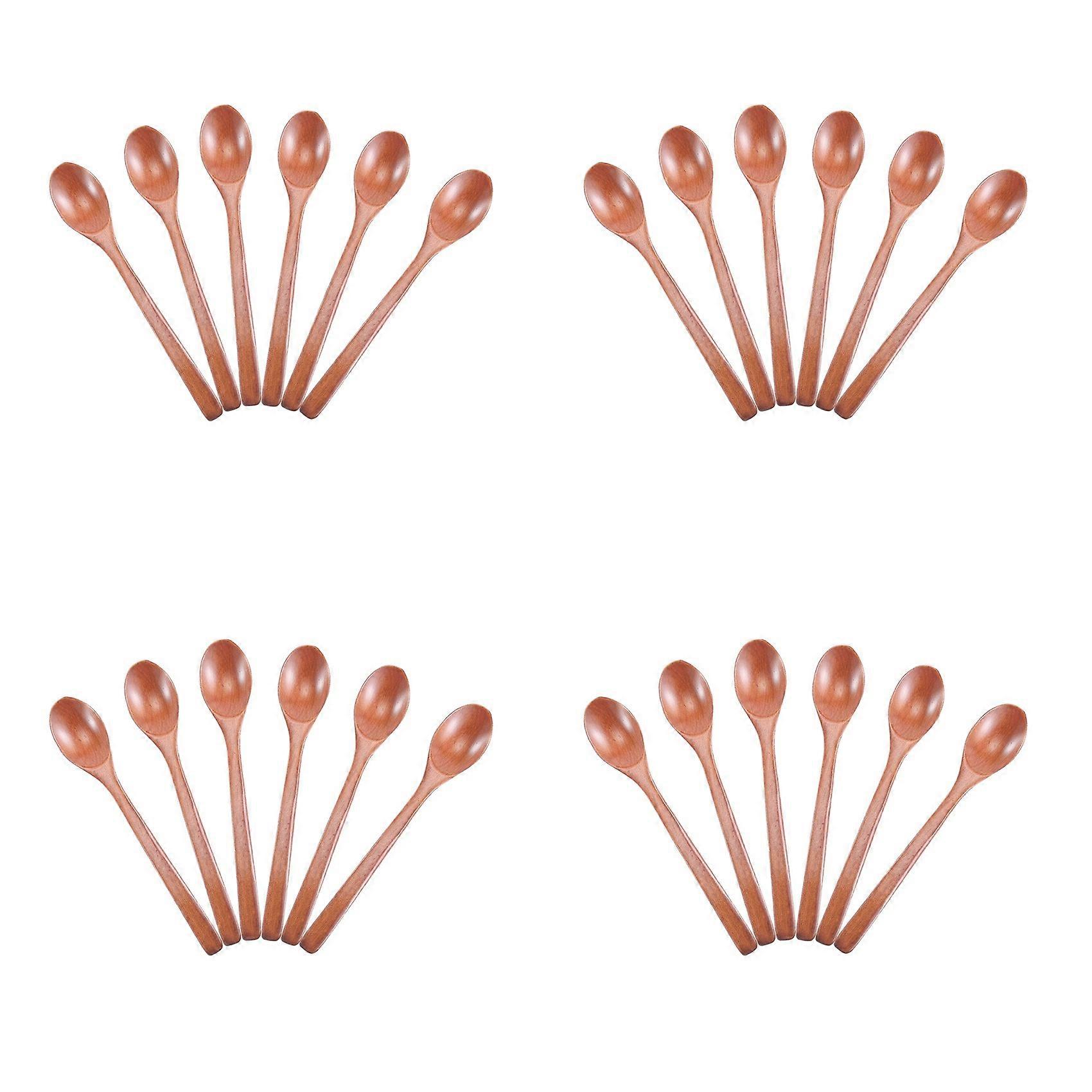 Wooden Spoons, 24 Pieces Wood Soup Spoons for Eating Mixing Stirring, Long Handle Spoon Kitchen Utensil