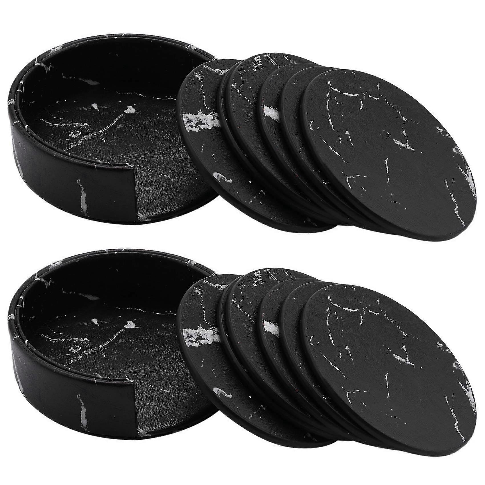 Coasters for Drinks 12-Piece with Holder,Black Round Cup Mat Pad Set Of Home and Kitchen Use