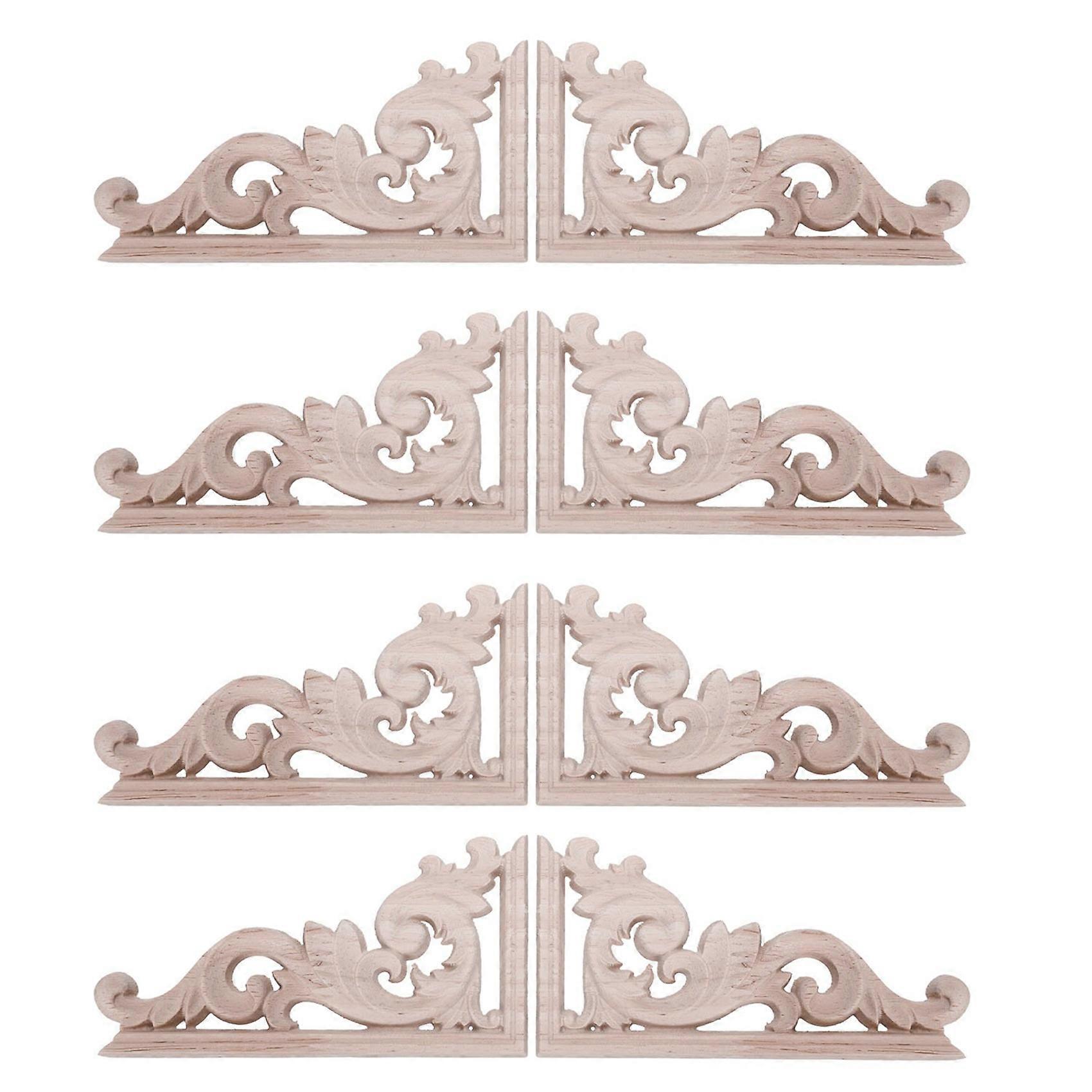 8Pcs Left+Right(Each 4Pcs) Vintage Wooden Carved Corner Onlay Furniture Wall Decor Unpainted Frame Applique