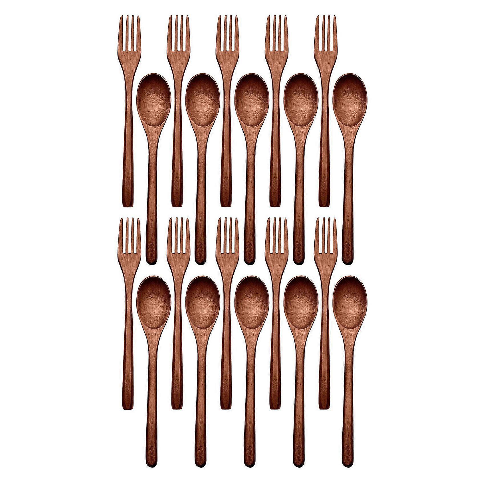 20 Pcs Wooden Spoons Forks Set Wooden Utensil Set Reusable Natural Wood Flatware Set for Cooking Stirring Eating