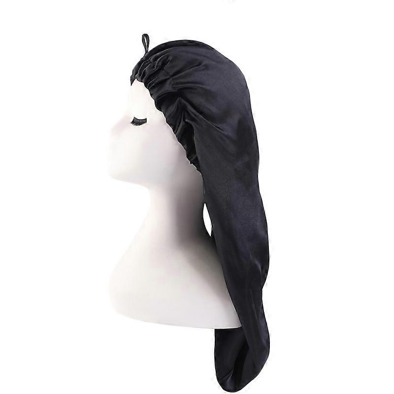 Long Satin Bonnet Sleep Cap Extra Large Silk Sleeping Hijab with Wide Elastic Band Loose Night Hat for Women Braids Curly Hair