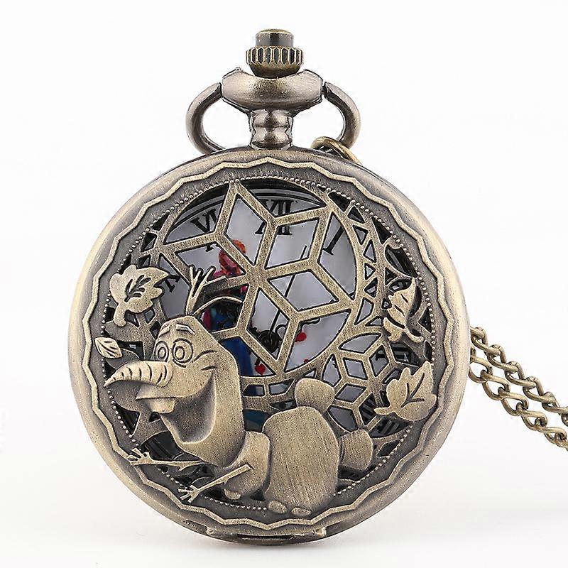 Frozen Snowman Olaf Cosplay Metal Quartz Pocket Watch Men Vintage Necklace Kawaii Watches Bronze Clock Kids Toy Gift