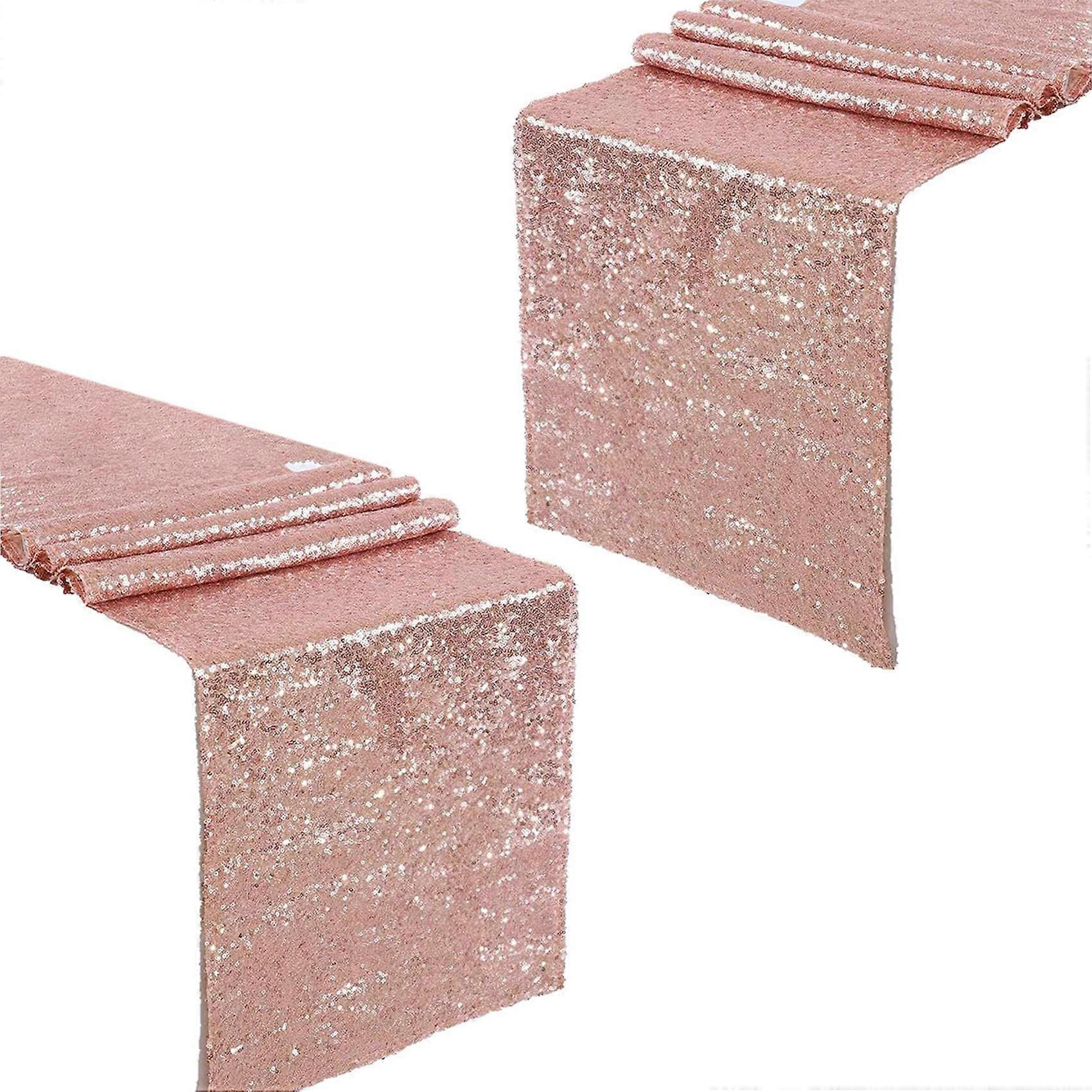 2X Sparkly Rose Gold Sequin Table Runners 12X108 Inch Shimmer Table for Wedding Party Anniversary Birthday Table Cloth