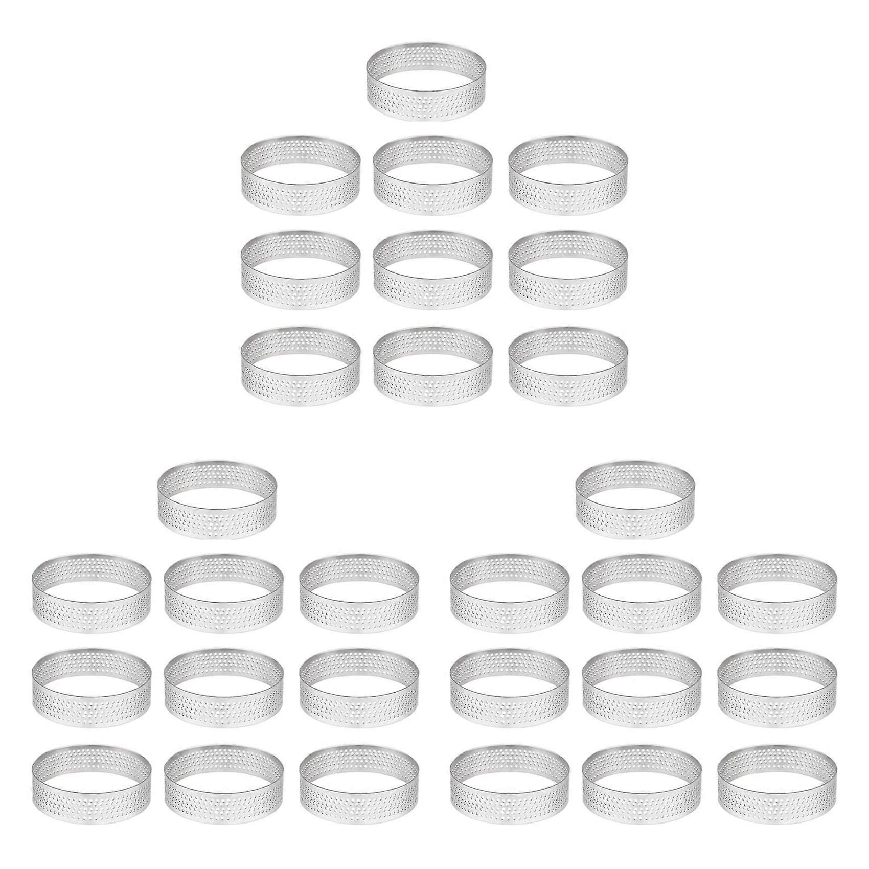 30Pcs 4.5cm Round Stainless Perforated Seamless Tart Ring Quiche Ring Tart Pan Pie Tart Ring with Hole Tart Shell Ring