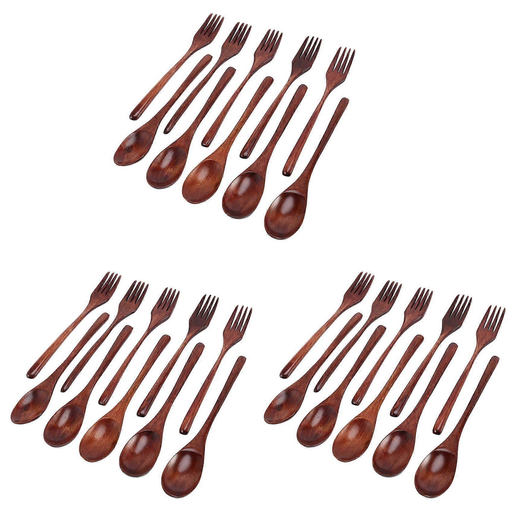 Practical dinnerware set: you will receive 15 pieces of wooden spoons and 15 pieces of wooden forks, complete spoon and fork combination for you to eat different kinds of foods easily; Sufficient quantity for your daily use and replacement, you can prepare one at home and one in office, and the rest of them for backup. Quality material: these soup spoons and forks are made of quality wood, safe, reusable and durable to use, fit for long time service; Besides, these spoons with long handle are suitable for eating heat meal because wooden material won't conduct heat. Reliable and healthy: the wooden utensil set is painted with tree lacquer that is healthy material, won't do harm to your health, you can rest assured to use; Smooth surface, light in weight and compact in size, portable to carry with you. Easy to clean: these spoons and forks are polished, the smooth and non-stick surface is good for you to clean, just use the mild detergent to wash in cold or warm water; Notice: please don't soak them into the water for a long time. Multiple uses: this Japanese wooden spoons and forks set can be applied on stirring, eating and so on, such as eating fried rice, desserts, soup, salad, noodles, appropriate for home, office, school, it's easy to carry them in outdoor activities, like camping, picnic, travel and more. Colour: brown Material: wood Size: about 22.5cm in length Package Contents: 15 x spoons 15 x forks