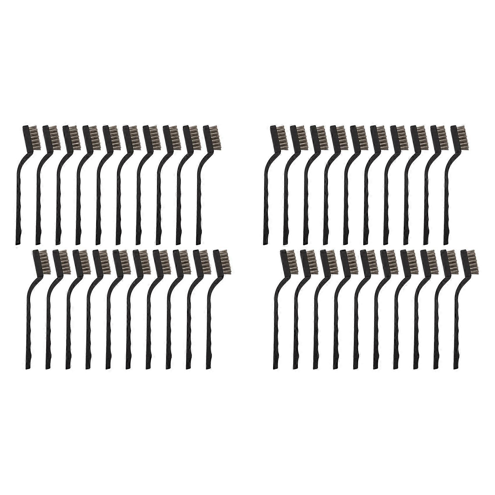 40 Pieces Mini Handle Stainless Steel Wire Bristles Brush Set for Cleaning Welding Slag, Stain and Rust (Silvery)