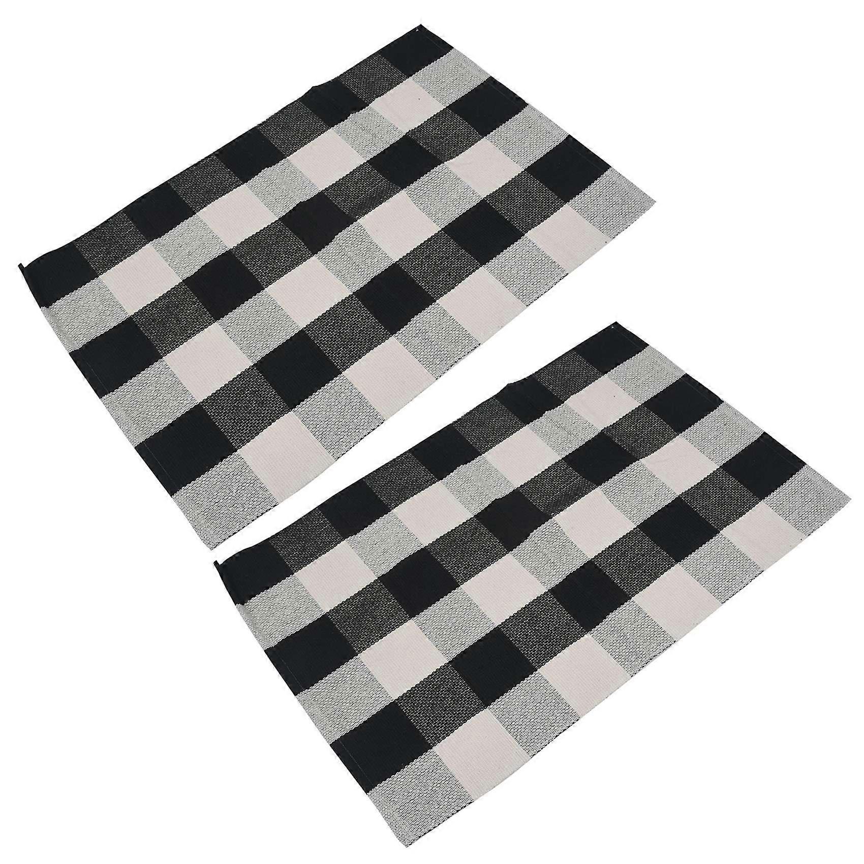 2X Cotton Buffalo Plaid Rugs,Buffalo Check Rug,23.6Inch X35.4Inch,Checkered Outdoor Rug (Black and White Porch Rugs)