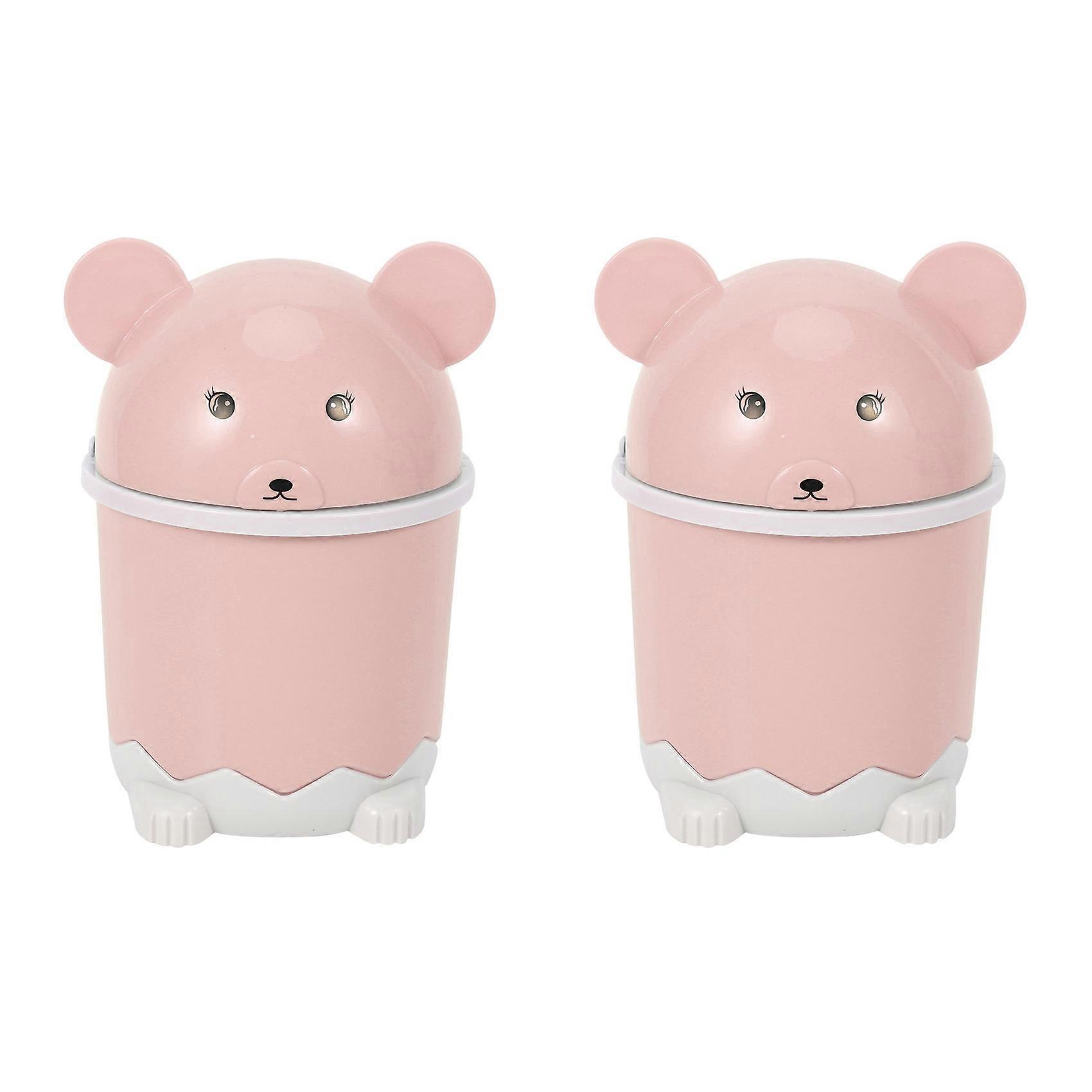 2X Creative Cute Desktop Trash Desktop with Lid Small Paper Basket Mini Flip Plastic Trash Can Pink