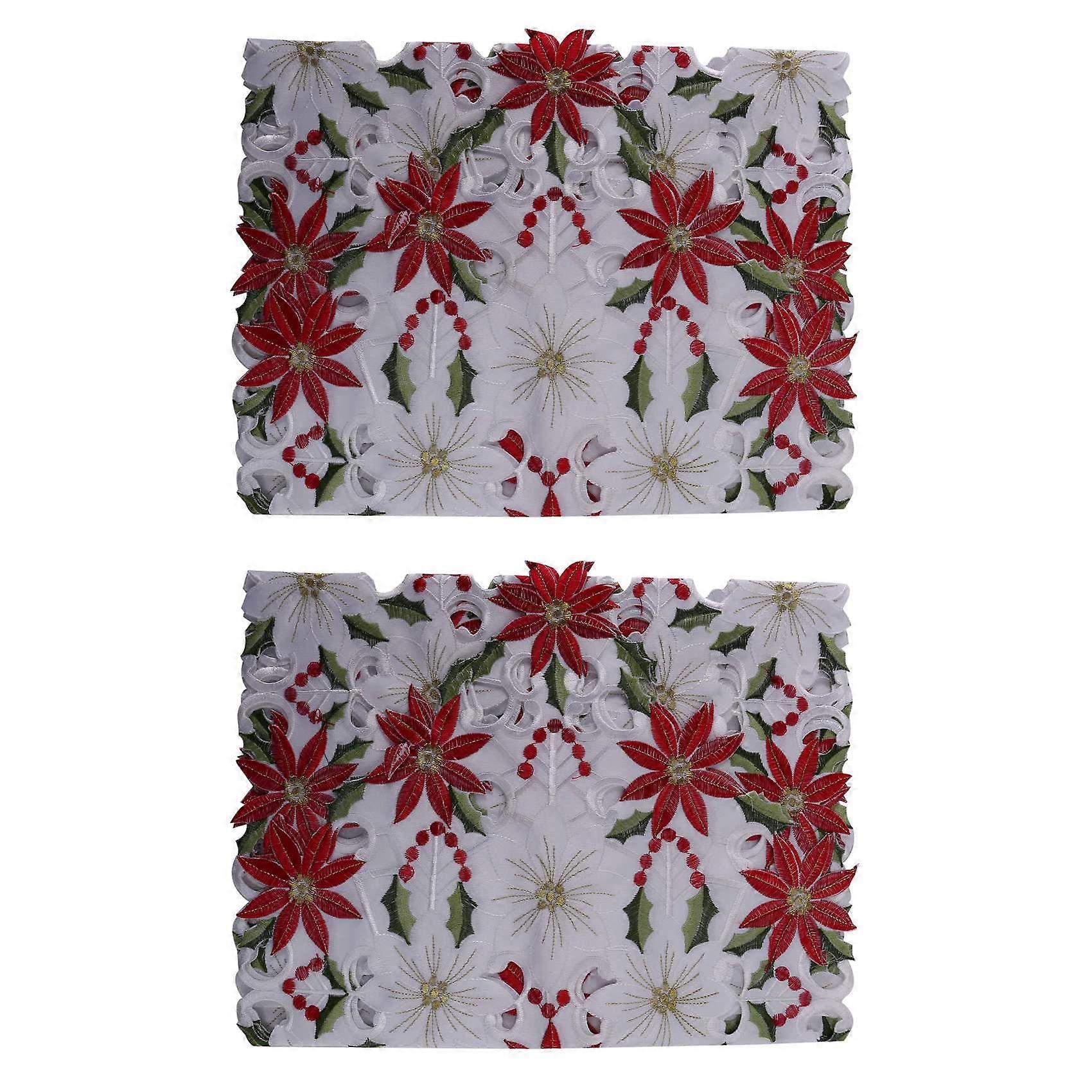 2X Christmas Embroidered Table Runner, Luxury Holly Poinsettia Table Runner for Christmas Decorations, 15 x 70 Inch