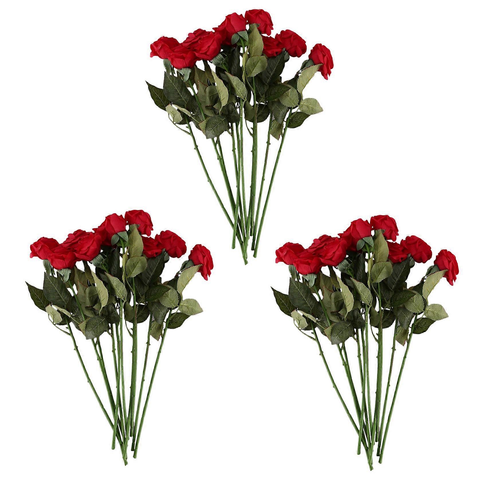 30 Pcs Latex Real Touch Rose Decor Rose Artificial Flowers Silk Flowers Floral Wedding Bouquet (Dark Red)
