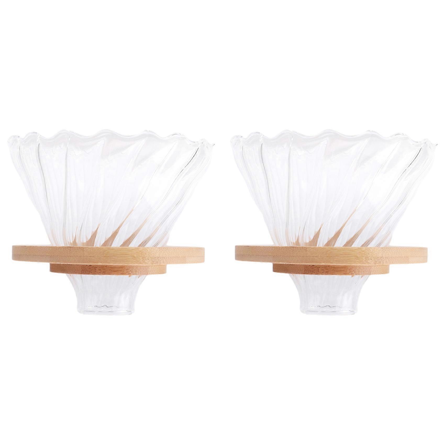 2X Wooden Coffee Dripper Reusable Filters V60 Glass Style Glass Coffee Filter Reusable Coffee Funnel