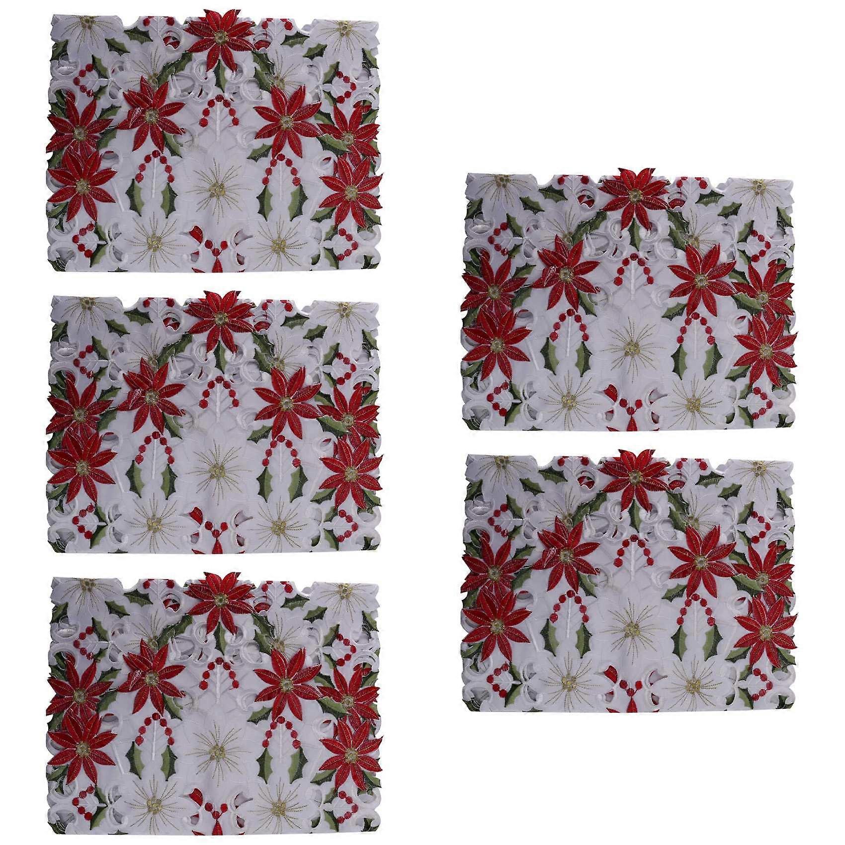 5X Christmas Embroidered Table Runner, Luxury Holly Poinsettia Table Runner for Christmas Decorations, 15 x 70 Inch