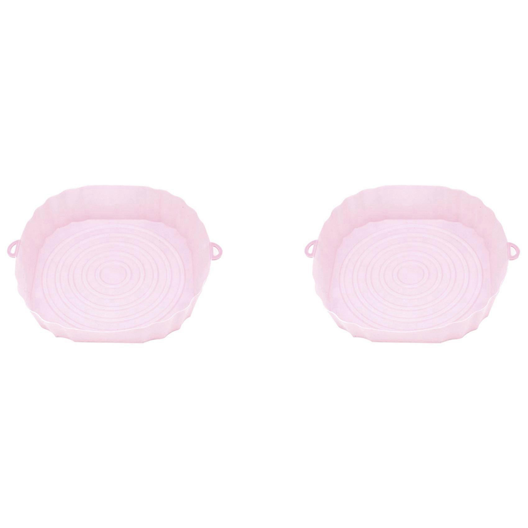 2pcs 20cm Air Fryers Oven Baking Tray Fried Chicken Basket Mat AirFryer Silicone Pot Round Replacemen Grill Pan Pink