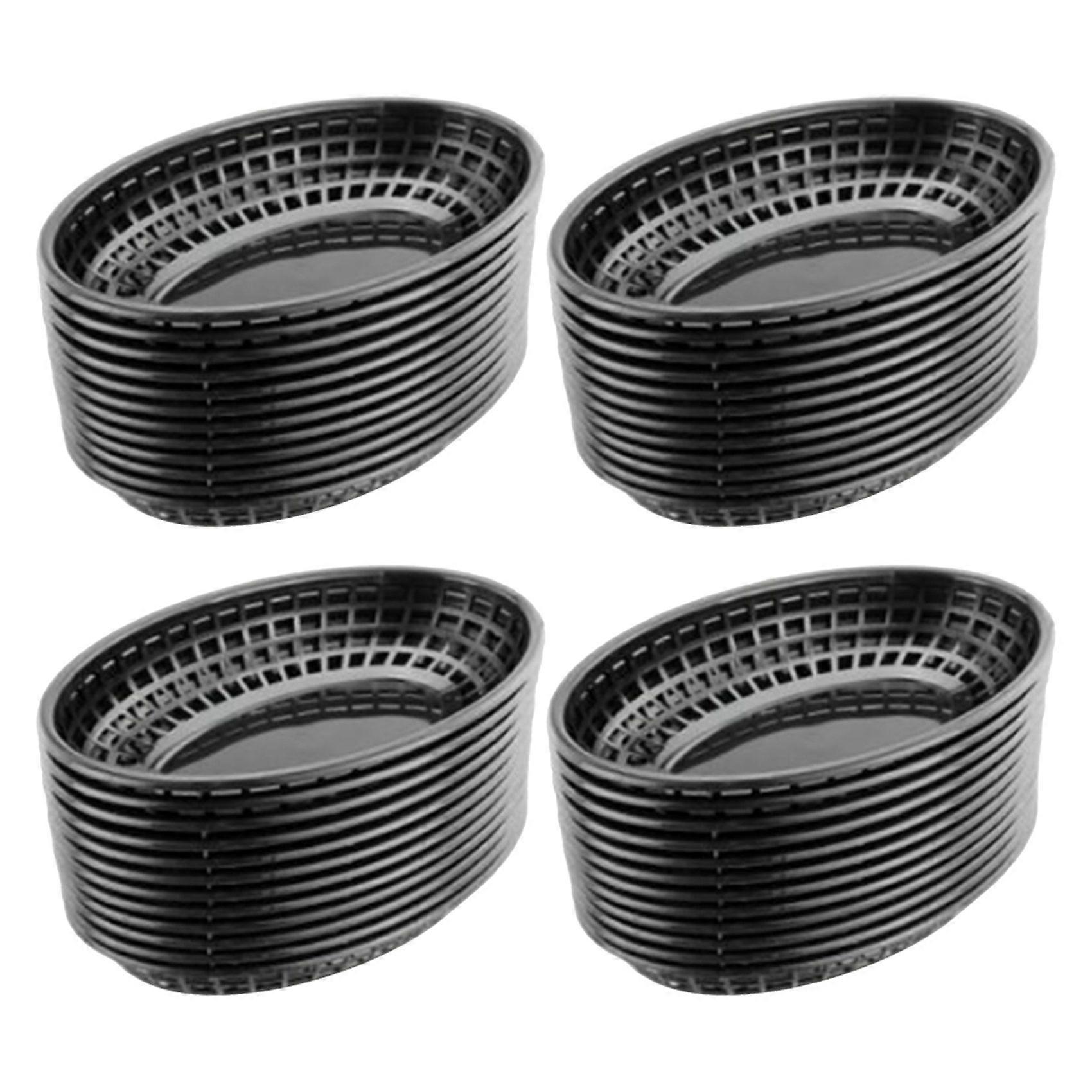 48 Pcs Plastic Fast Food Baskets Oval Serving Platter Breakfast Dinner Plates French Fries Cake Bread Tray Restaurant