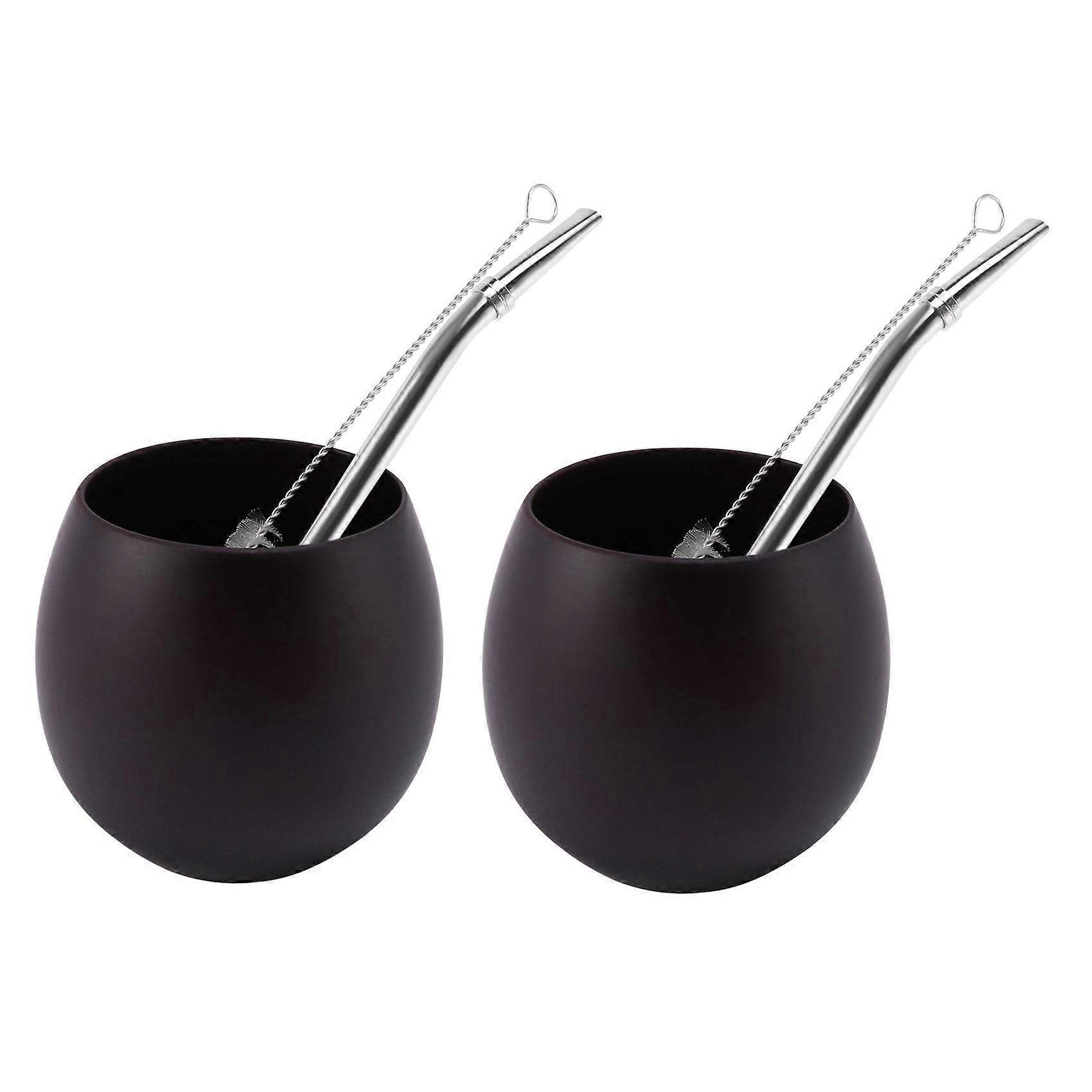 2X Wooden Yerba Gourd Mate Tea Set Handmade Natural Wood Coffee Mate Cup with Spoon Straw Bombilla Brush 200ML(Deep)