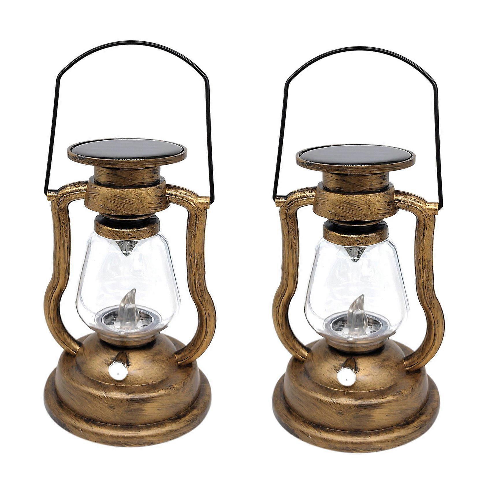 2X Retro Solar Hanging Candle Light LEDs Oil Lamp Flickering Flameless Solar Lantern Outdoor Garden Yard Lighting-Gold