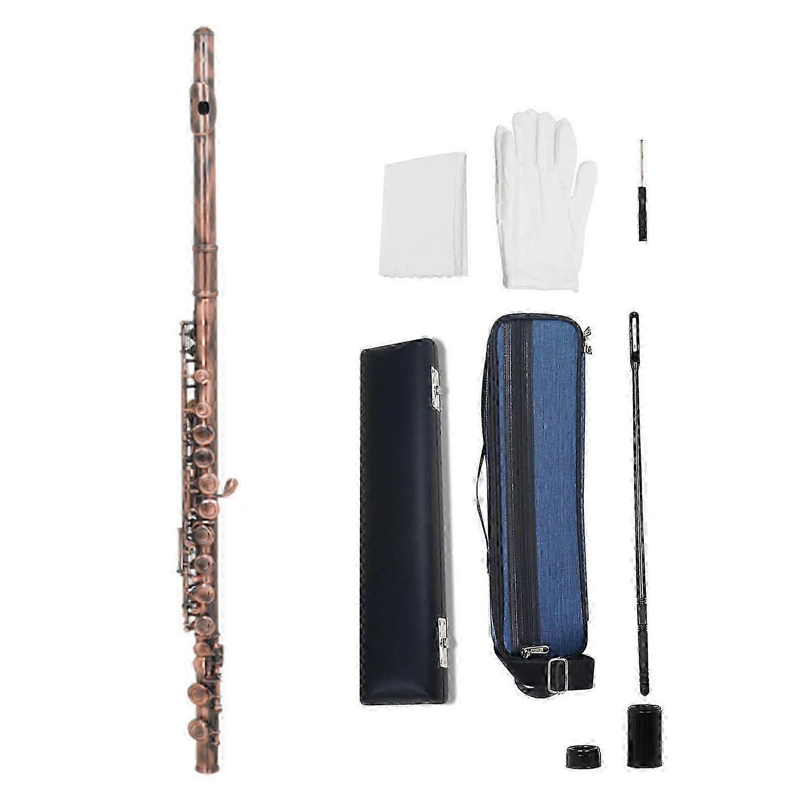 Flute Musical Instrument 16 Holes Closed Hole Flute C Key Flutes Woodwind Instrument with Cloth Rod Gloves Starter Flute blue
