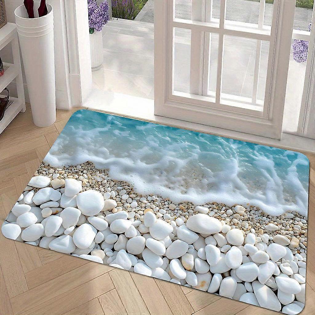 1 Piece Beach Scene Non-Slip Doormat - Machine Washable Polyester Flannel Mat, Indoor/Outdoor Entry Mat for Home Porch