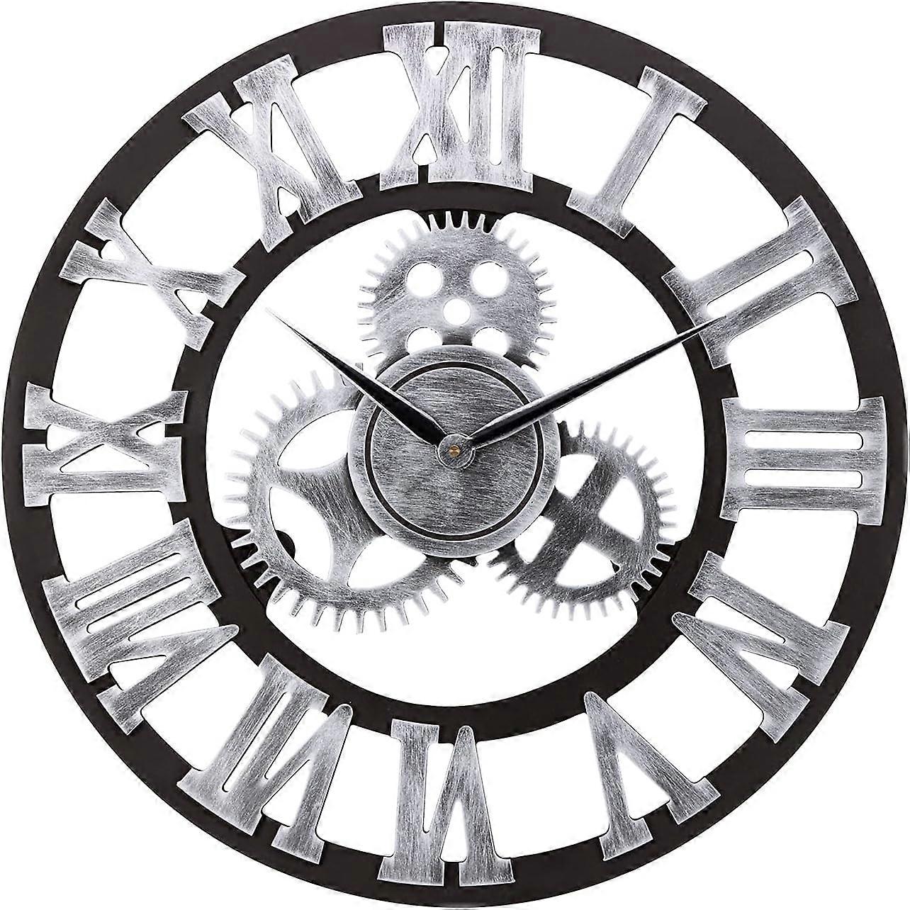 28" Whisper Ticking Silent Wall Clock-3D Retro Rustic Country Decorative Luxury Art Big Wooden Vintage for House Warming Gift(28 inches, Roman