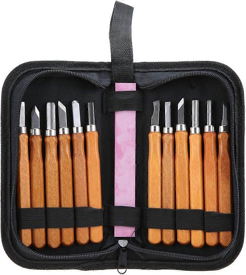 13pc Carbon Steel Wood Carving Knife Tool Kit-with Reusable Pouch and Sharpner