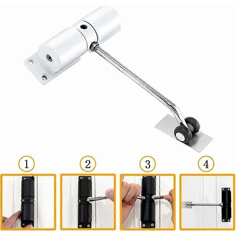 Automatic Door Closer, Zinc Alloy Safety Spring Door Closer Adjustable 30 kg Closing Door Hinge(White)