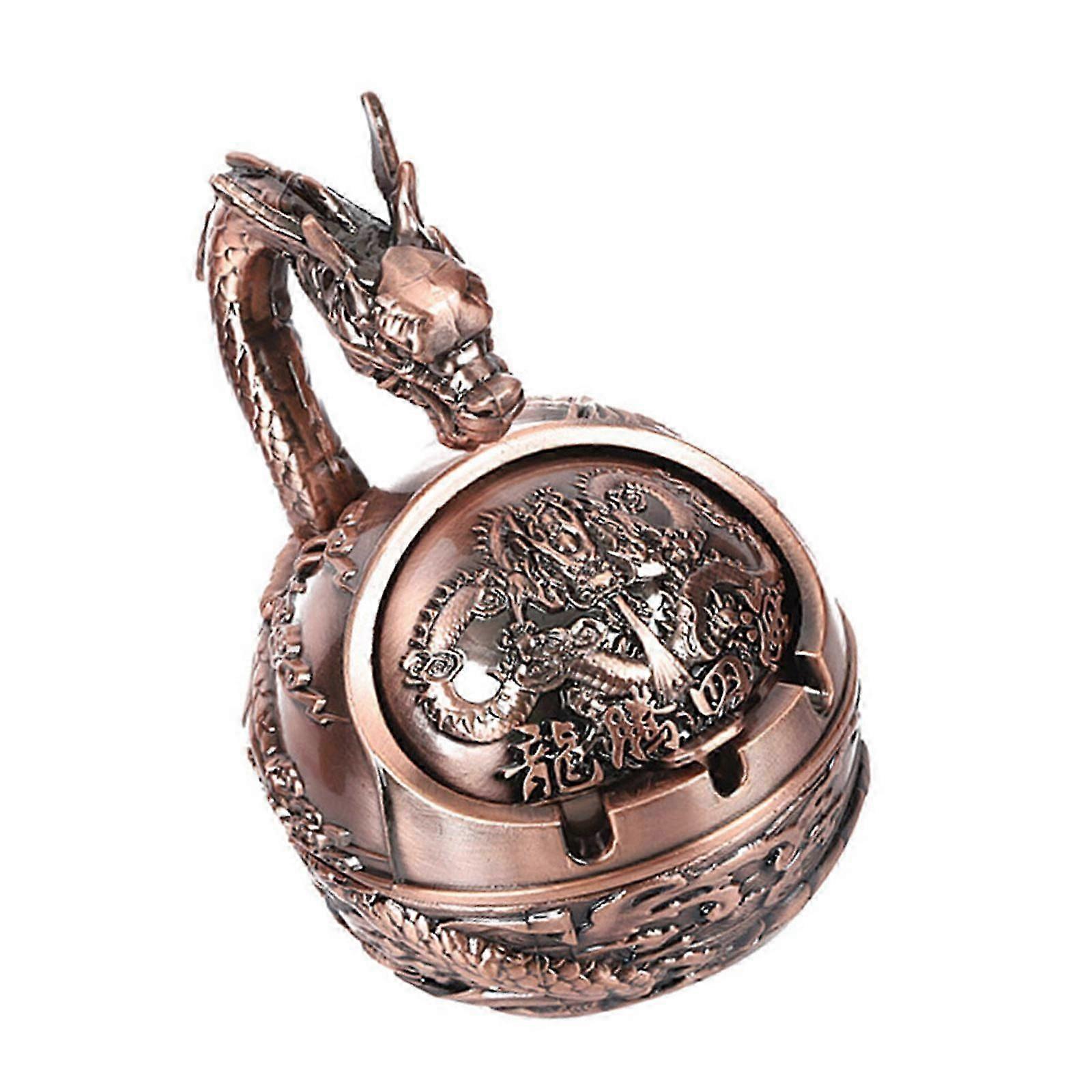 Metal Ashtray Dragon Pattern Carving Desktop Ashes Organizers with Dustproof Lid Indoor and Outdoor Decors Piece