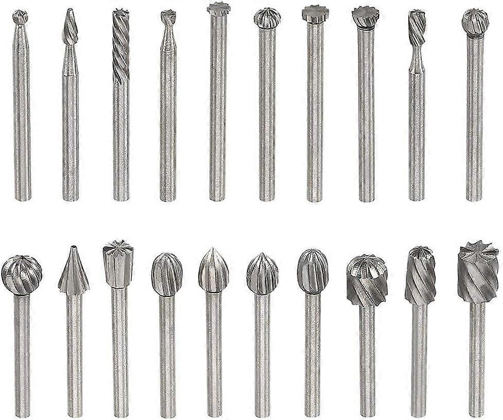 Yakamoz 20pcs 1/8" (3mm) Shank High Speed Steel Rotary Files Burrs Wood Milling Rotary File Burr Set for DIY Woodworking Carving Engraving Drilling