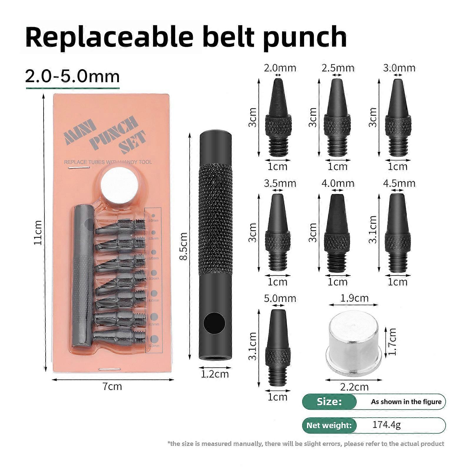 Leather Hole Punch Removable Head Round Belt Punch Hole Screw Punch Leather Tools 2.0/2.5/3.0/3.5/4.0/4.5/5.0mm Leather Die