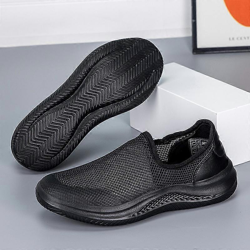 Plcom-size men's slip-on casual sports shoes with openwork breathable mesh fabric.