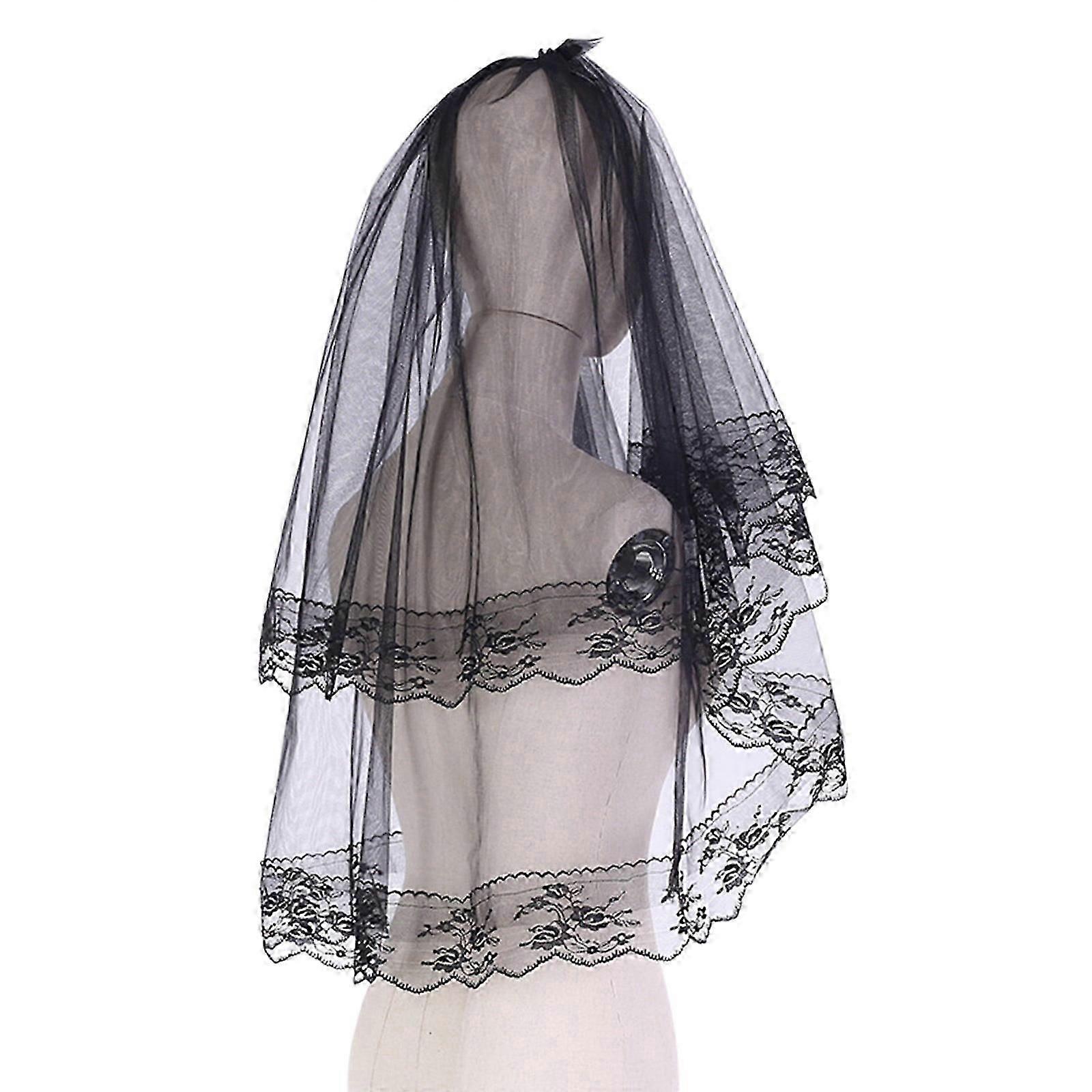 Dark Veil Lace Veils Mantilla Head Covering Wedding Hair Accessories Black Wedding Veil Headscarf Lace Black Veil single layer