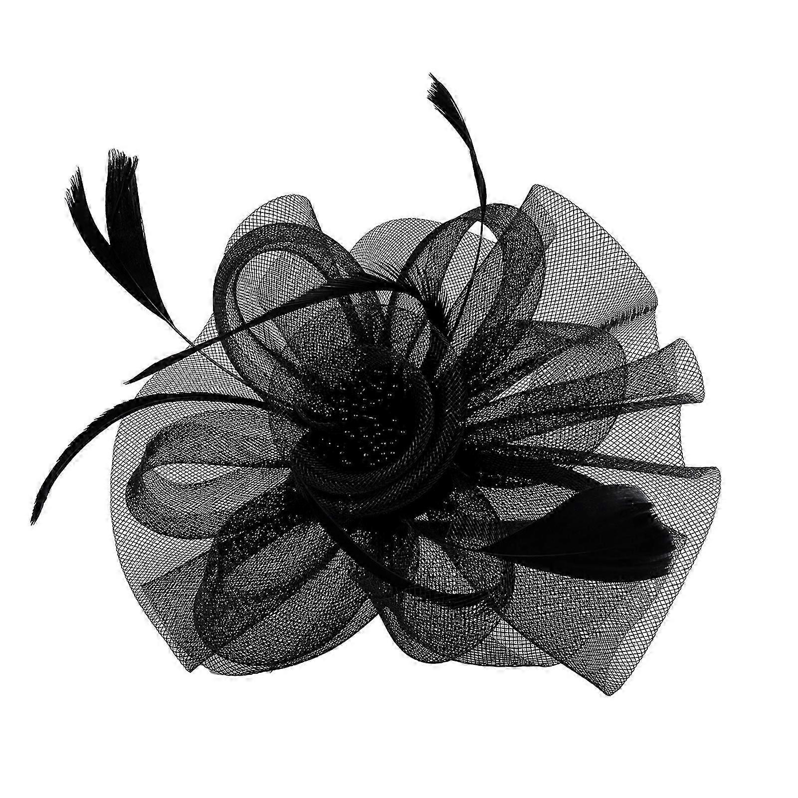 Vintage Bridal Hair Clip with Feather Decor Yarn Hat Shape Stage Performances Hairpin Vintage Headband for Taking Photo glitter