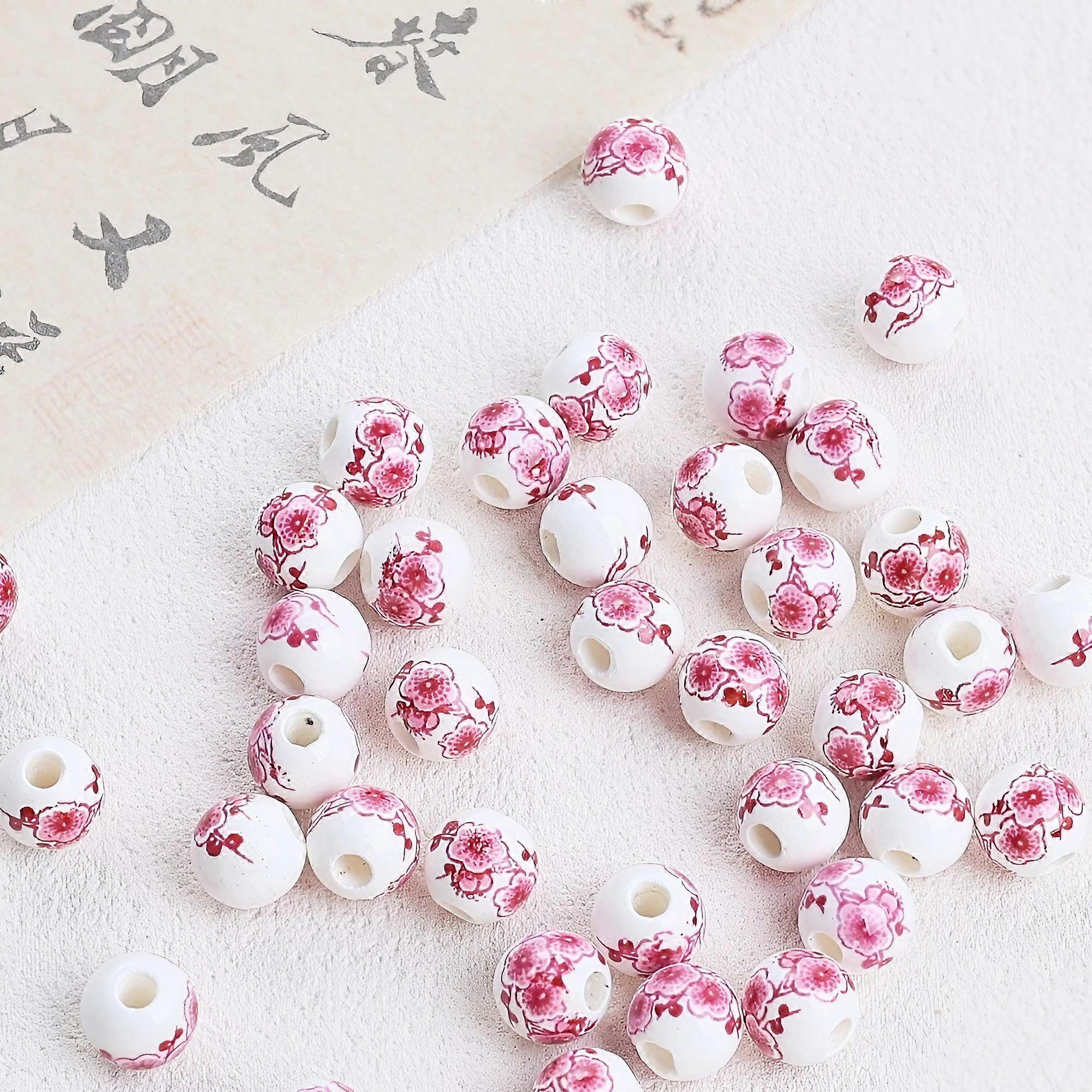 Chinese Floral Ceramic Beads – 6mm, 8mm, 10mm, 12mm Round Hand-Painted Beads for DIY Jewelry, Bracelets, Necklaces & Crafts – 20 Pieces per Pack