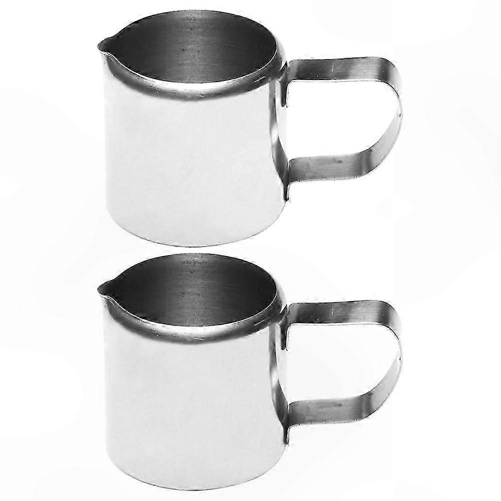 2-Piece Stainless Steel Milk Jugs for Coffee, Espresso Mini Pots with Sauce Holder