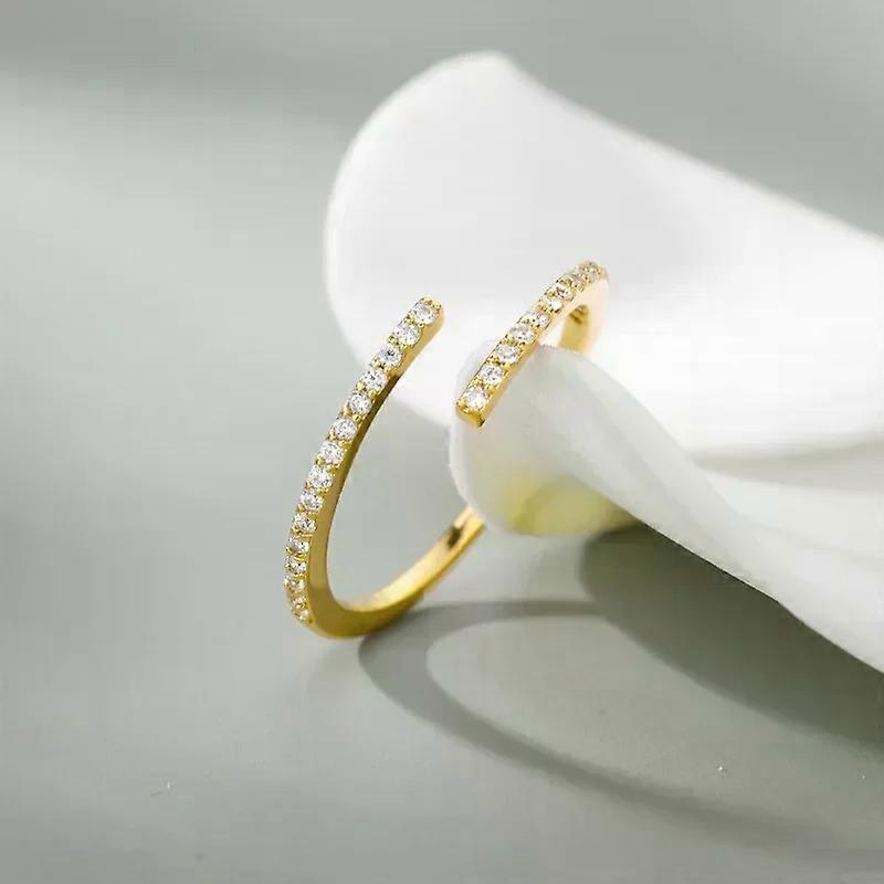 Exquisite Stainless Steel Line Double Layer Couple Opening Rings for Women Men Classic High Quality Gold Color Zircon Jewelry