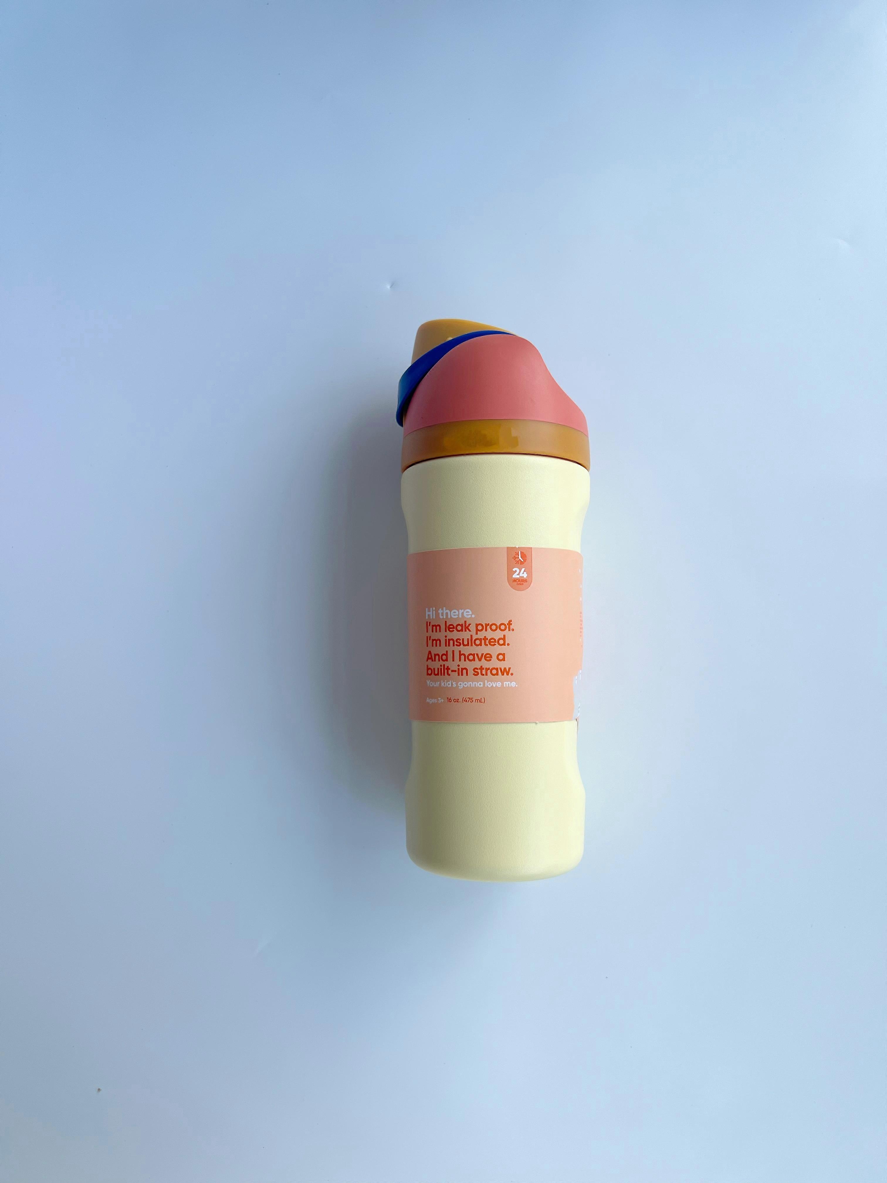 O---Wa 16 oz Stainless Steel Thermos Cup Cold Water Bottle Straw Cup Sports Water Cup Kidsren's Water Cup