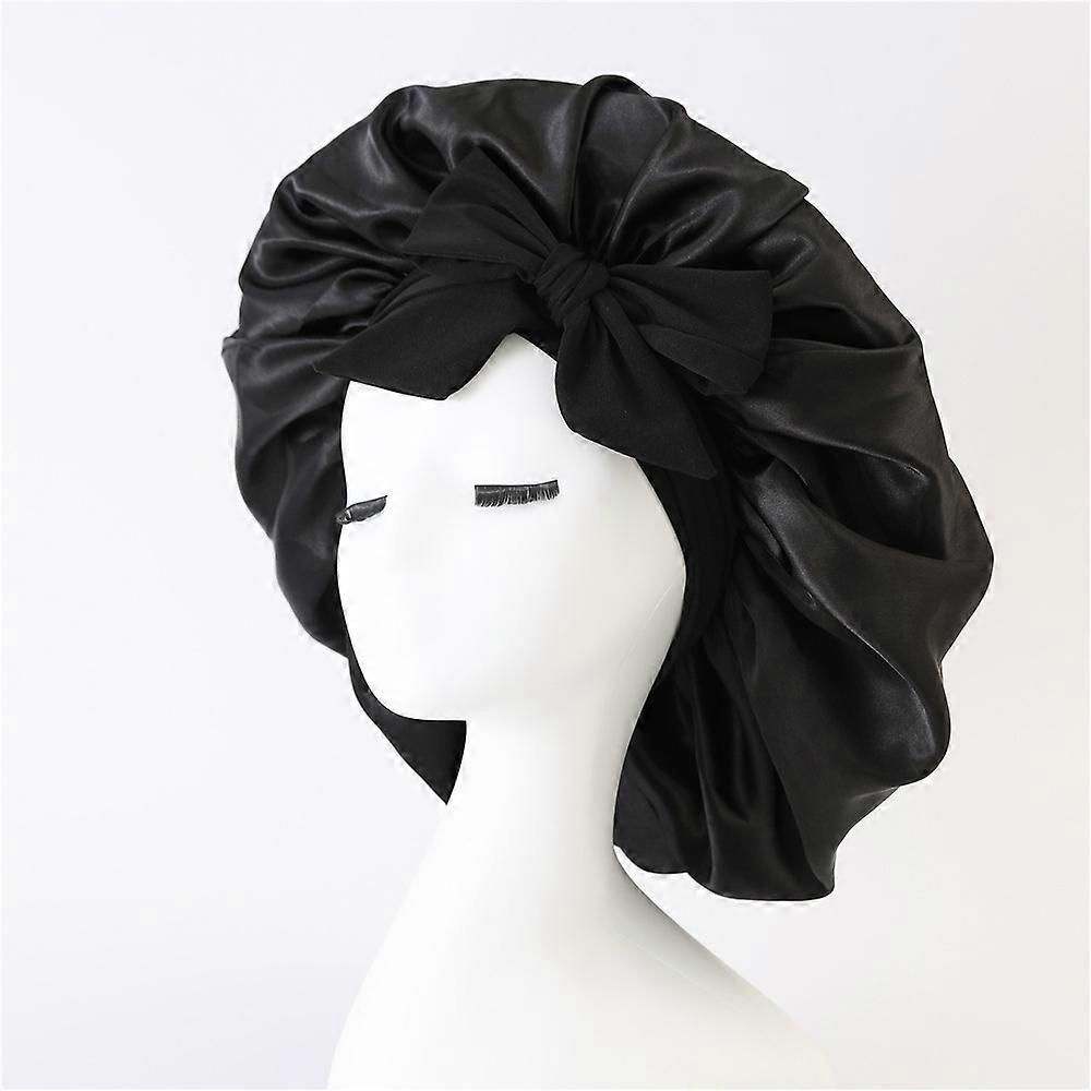 Women Satin Bonnet Solid Sleeping Hat Stretchy Tie Band Elastic Night Shower Cap Adjustable Hair Head Cover Bonnet for Women