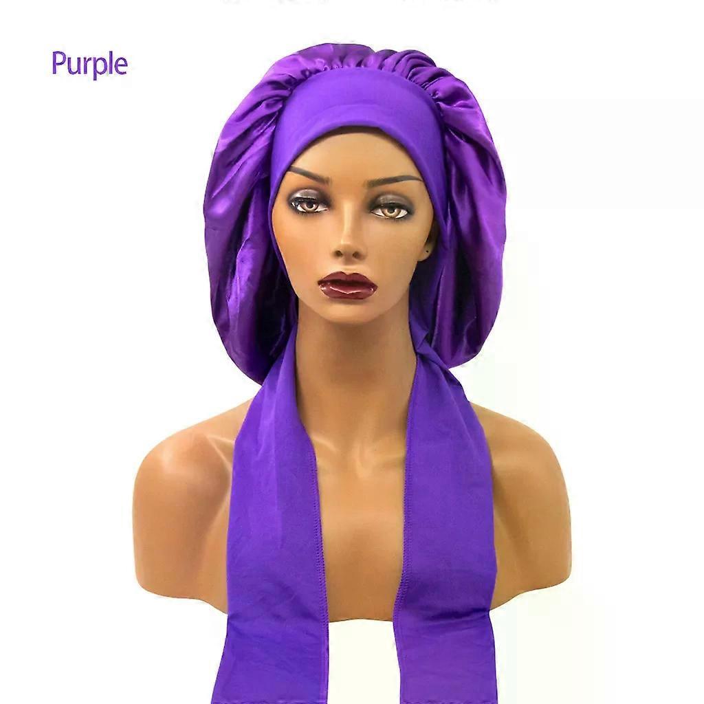 Women Satin Widened Sleep Hat Night Sleep Cap with Long Streamer Hair Care Bonnet Nightcap Elastic Cap De Nuit Shower Turban