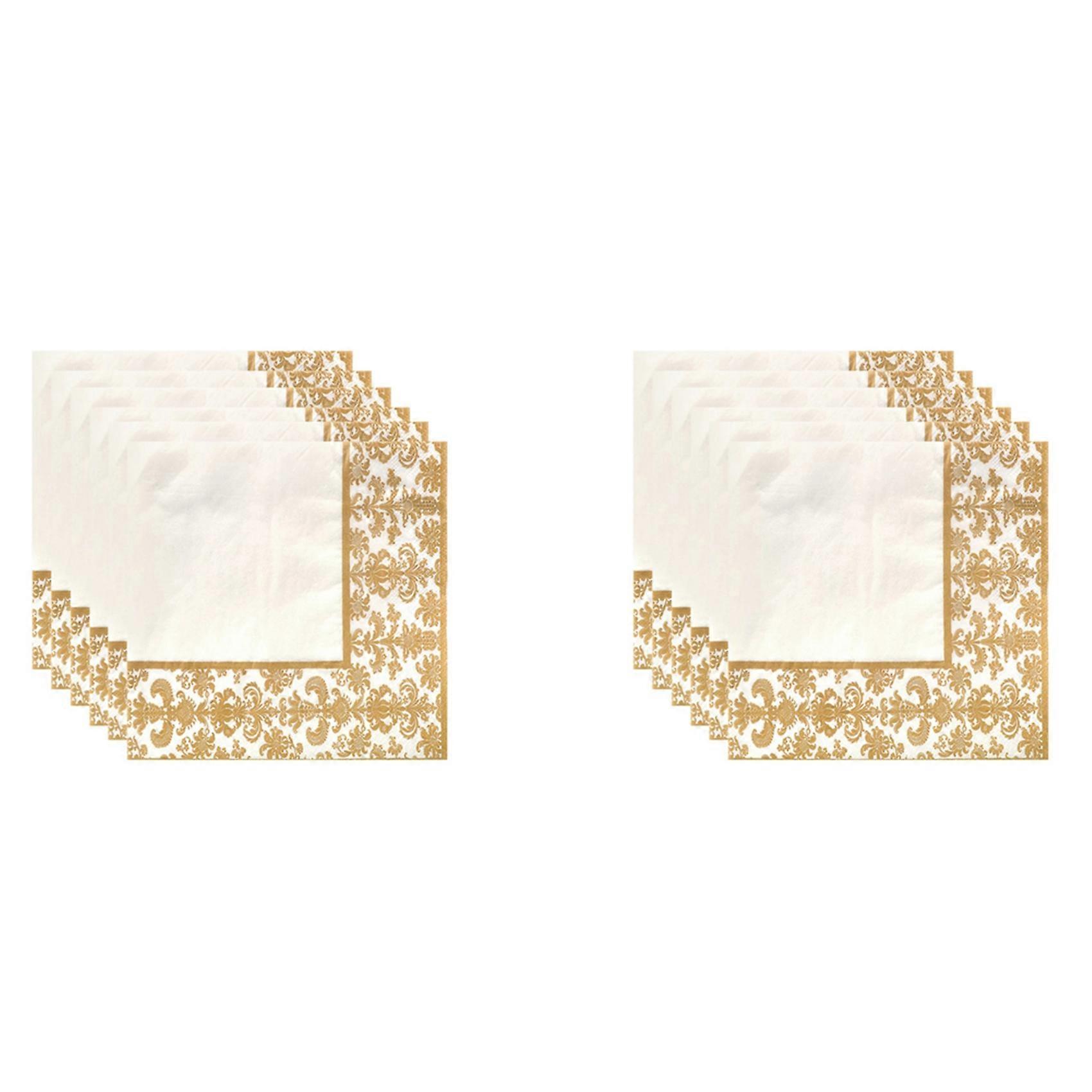 2X 100Pcs Gold Printing Disposable Napkin Tissue Paper Printed Napkins for Restaurant And Hotel (Golden + White)