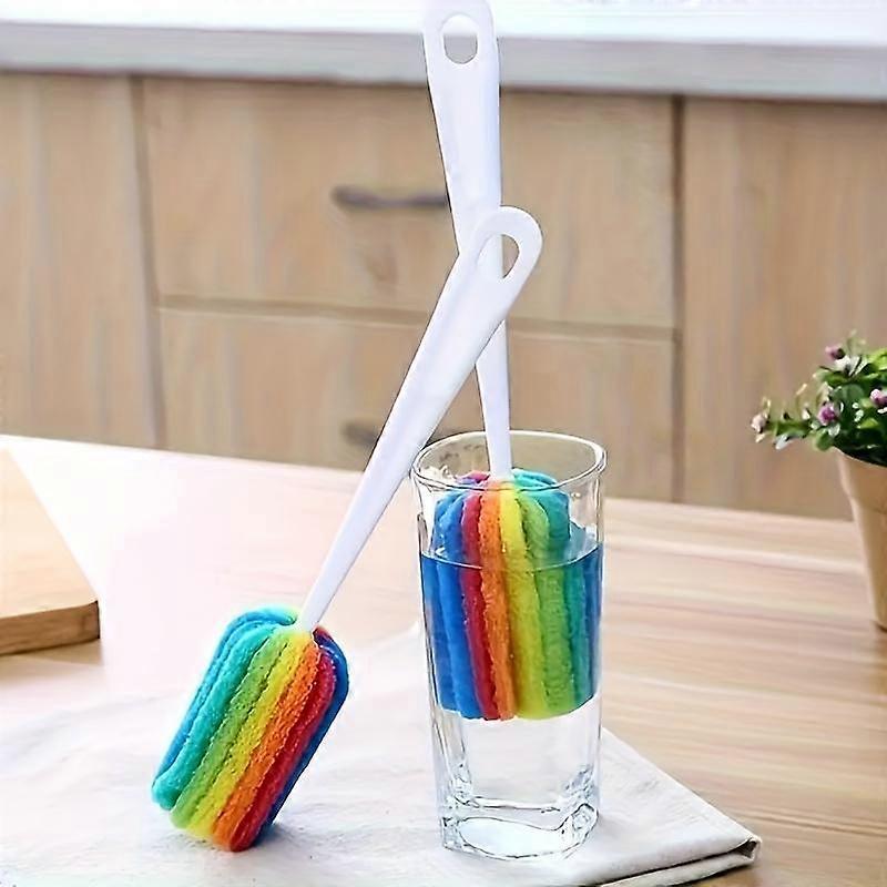 3pcs Rainbow Sponge Long Handle Bottle Brush, Reusable Heat Resistant Cup Scrubber, Non-Electric Multi-Scene Cleaning Tool for Kitchen, Bath