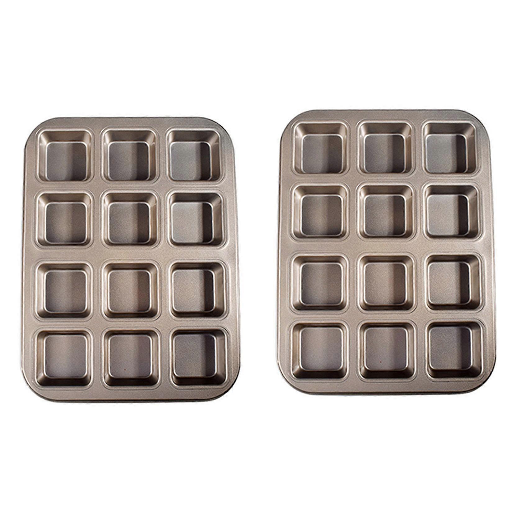 2X 12 Cups Square Mini Bread Burger Muffin Cupcake Mold for Household Non-Stick Baking Pan Oven Trays Pastry Tool(Gold)