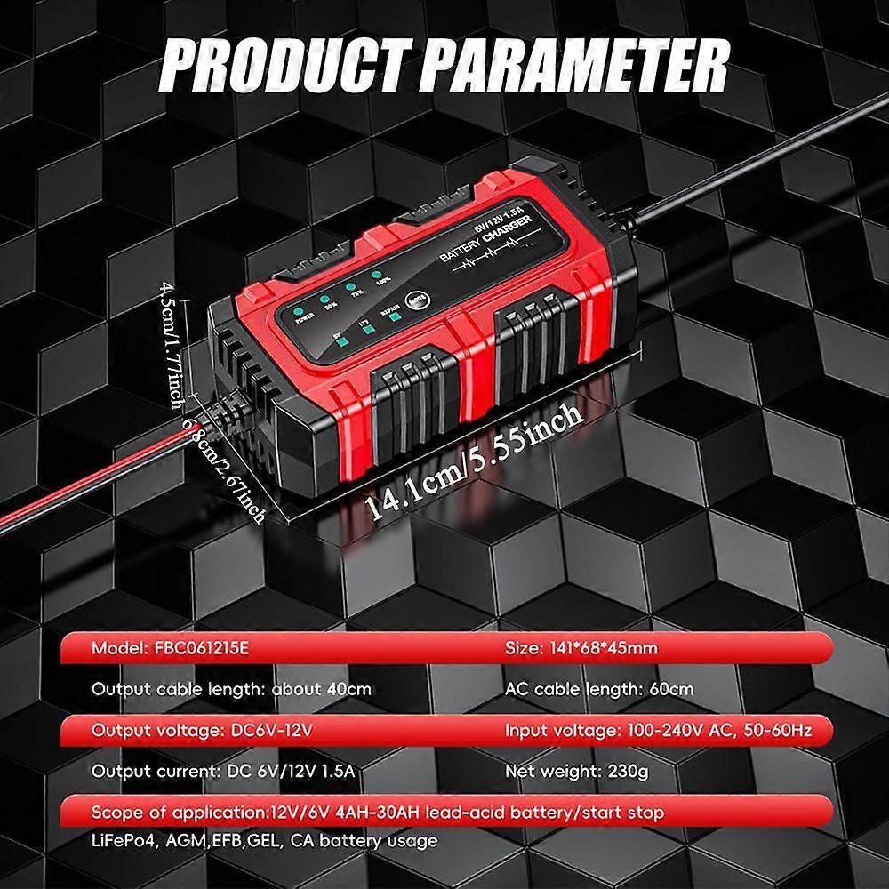 Car Battery Trickle Charger and Maintainer 1.5A 6V/12V Truck Trickle Battery Charger Automatic Tender Maintainer for Motorcycle