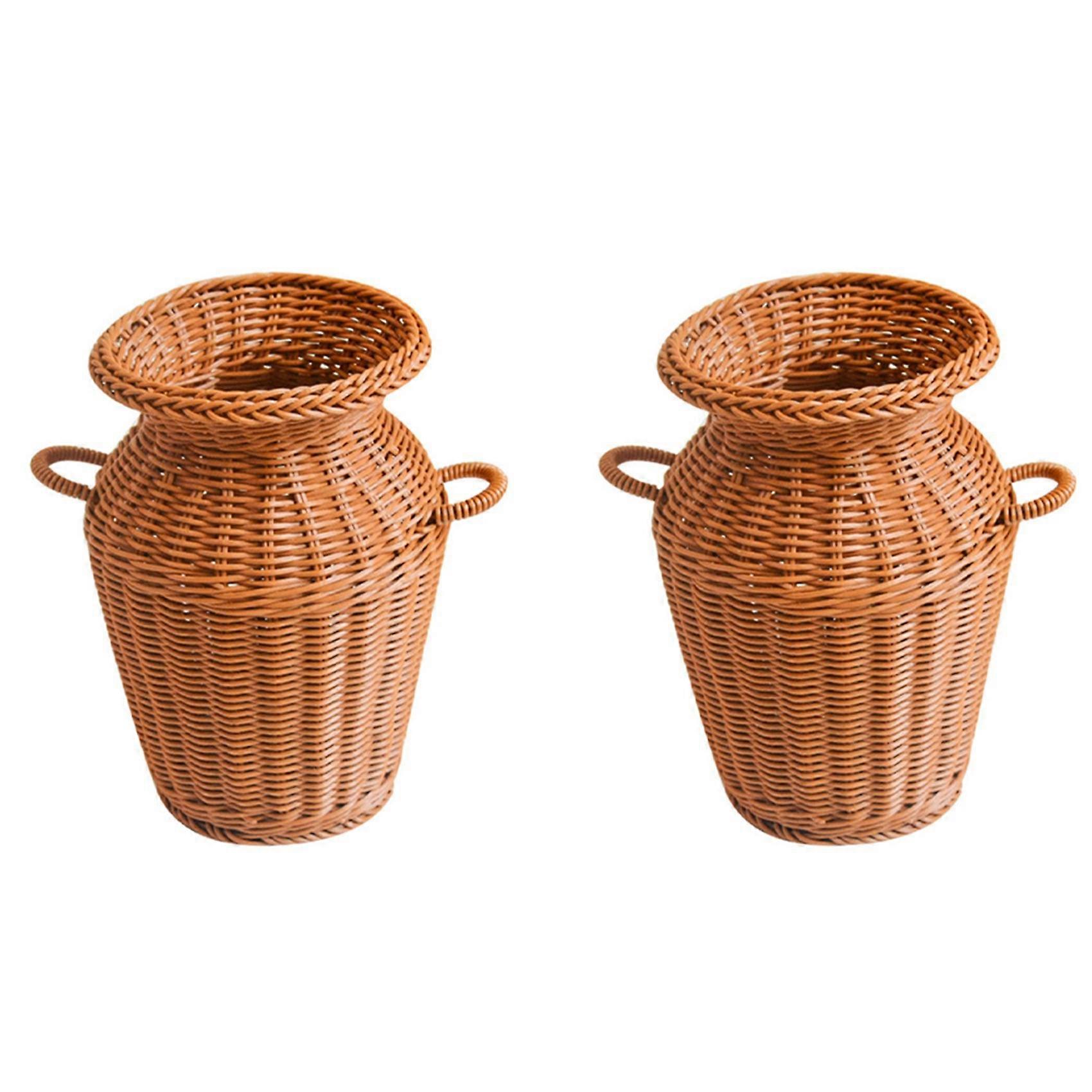 2X Imitation Rattan Woven Vase Art Vase Tabletop Decoration Plants Flower Pot Faddish Flower Rattan Crafts